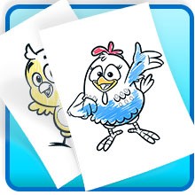 Encontre desenhos para colorir: Galinha Pintadinha, Pintinho Amarelinho, Galo Carijó, Baratinha, Borboletinha, Divas e As Naftalinas.